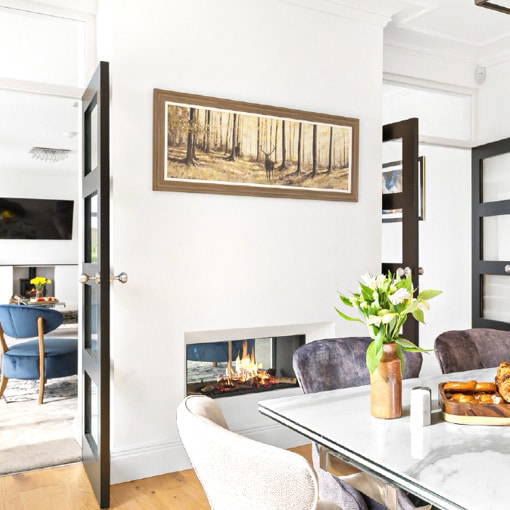 A full refurbishment has transformed the property, combining modern design with improved energy performance. All existing timber doors and windows were replaced with sleek, high-quality aluminium-framed units, enhancing both the appearance and durability of the home. A new sliding door was introduced on the south elevation, flooding the interior with natural light while creating a seamless connection to the outdoor space. To further enhance sustainability, photovoltaic (PV) solar panels were installed on the south-facing roof, helping to improve energy efficiency and reduce the home’s environmental impact.